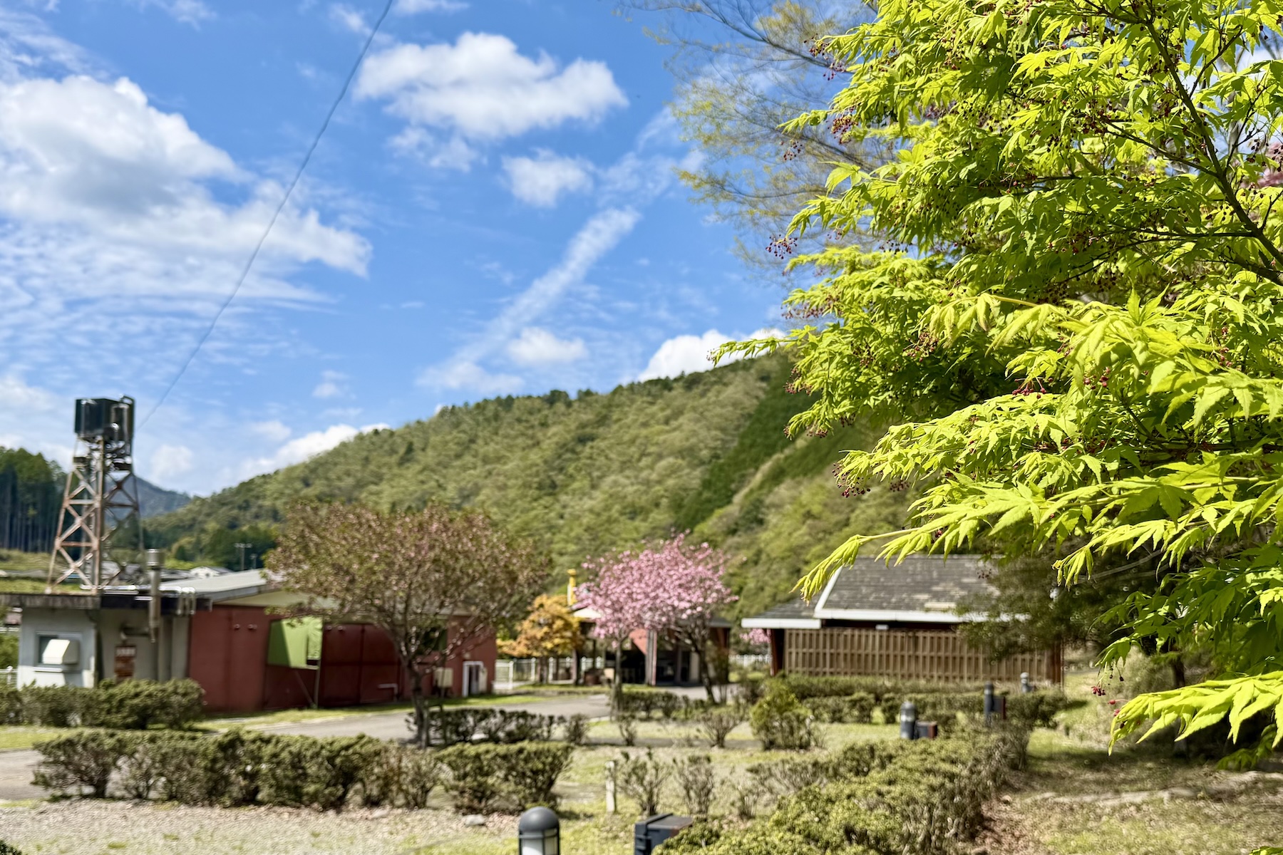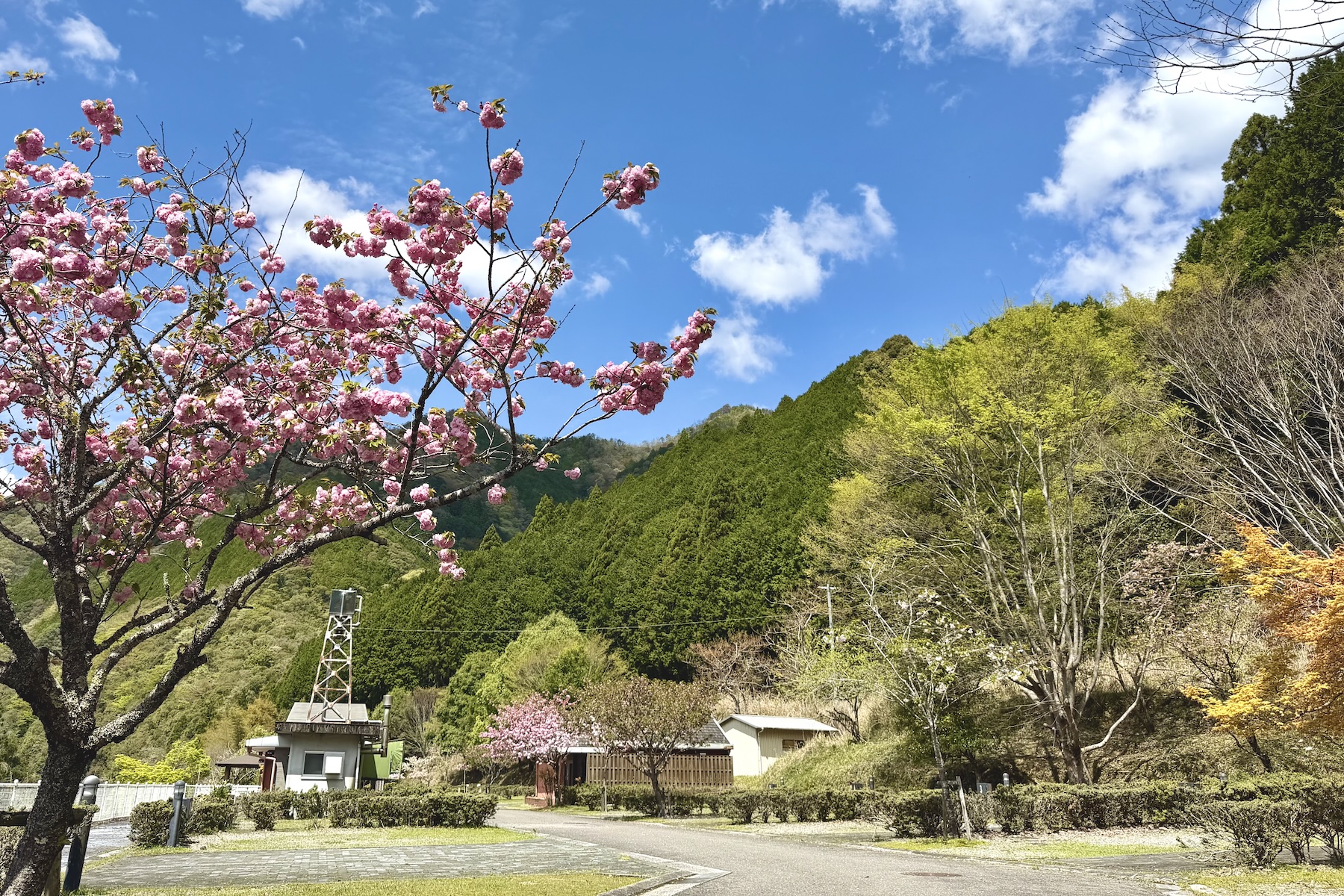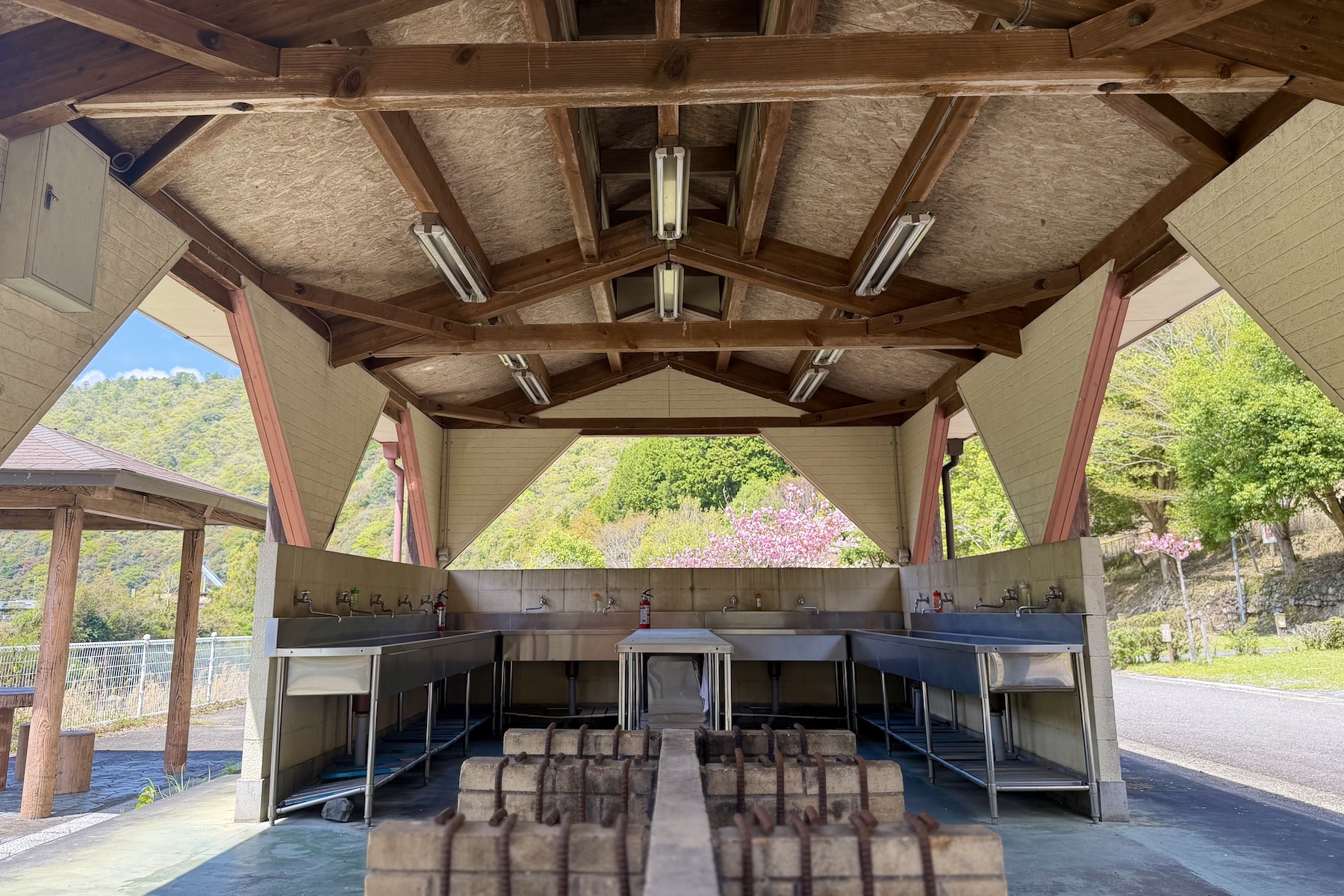 歴史ロマンの湯 しみず温泉から有田川上流に向け、国道480号線をクルマで走ること約3分。 対岸に見えてくるのがオートキャンプ場です。 広々とした敷地内に23区画をご用意しており、区画はすべてAC電源付き。 さらに1~4区画は水道付きでキャンピングカーもご利用OK。