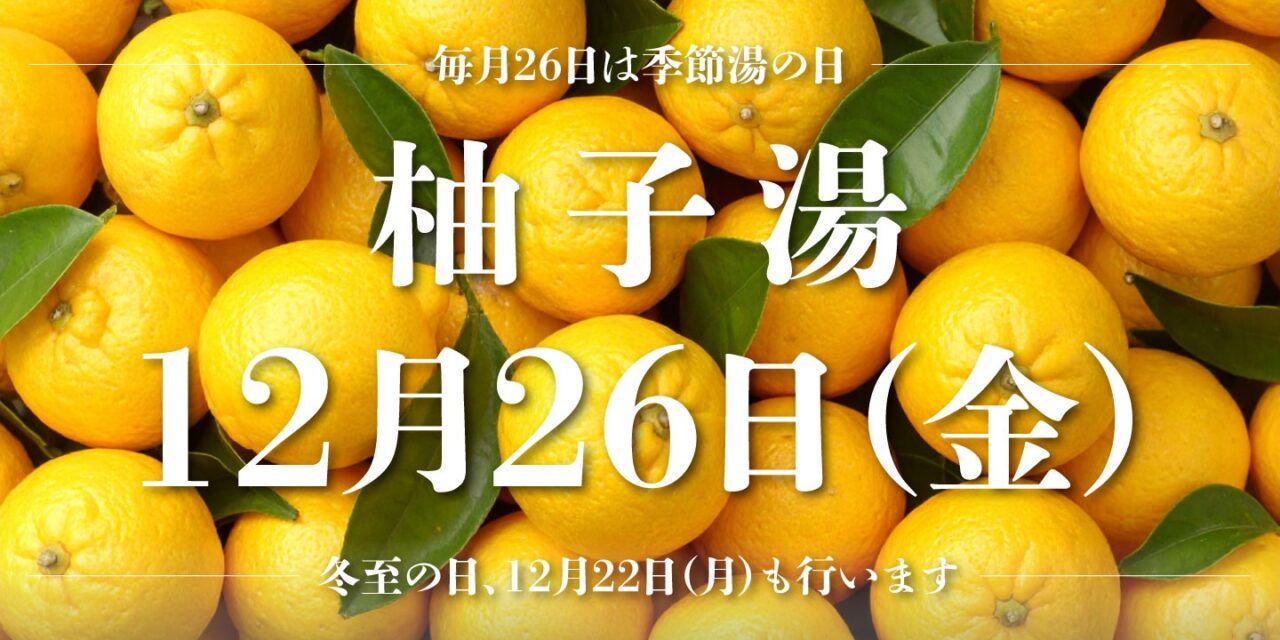 12月は柚子のお風呂。柚子には、柑橘類の中でもトップクラスのビタミンCが含まれています。このため、柚子湯に含まれる成分は、乾燥肌や美肌の保持などに高い効能を発揮します。また、果皮に多く含まれるリモネンという精油成分は、交感神経が活発になることで頭をすっきりさせる作用もあります。
