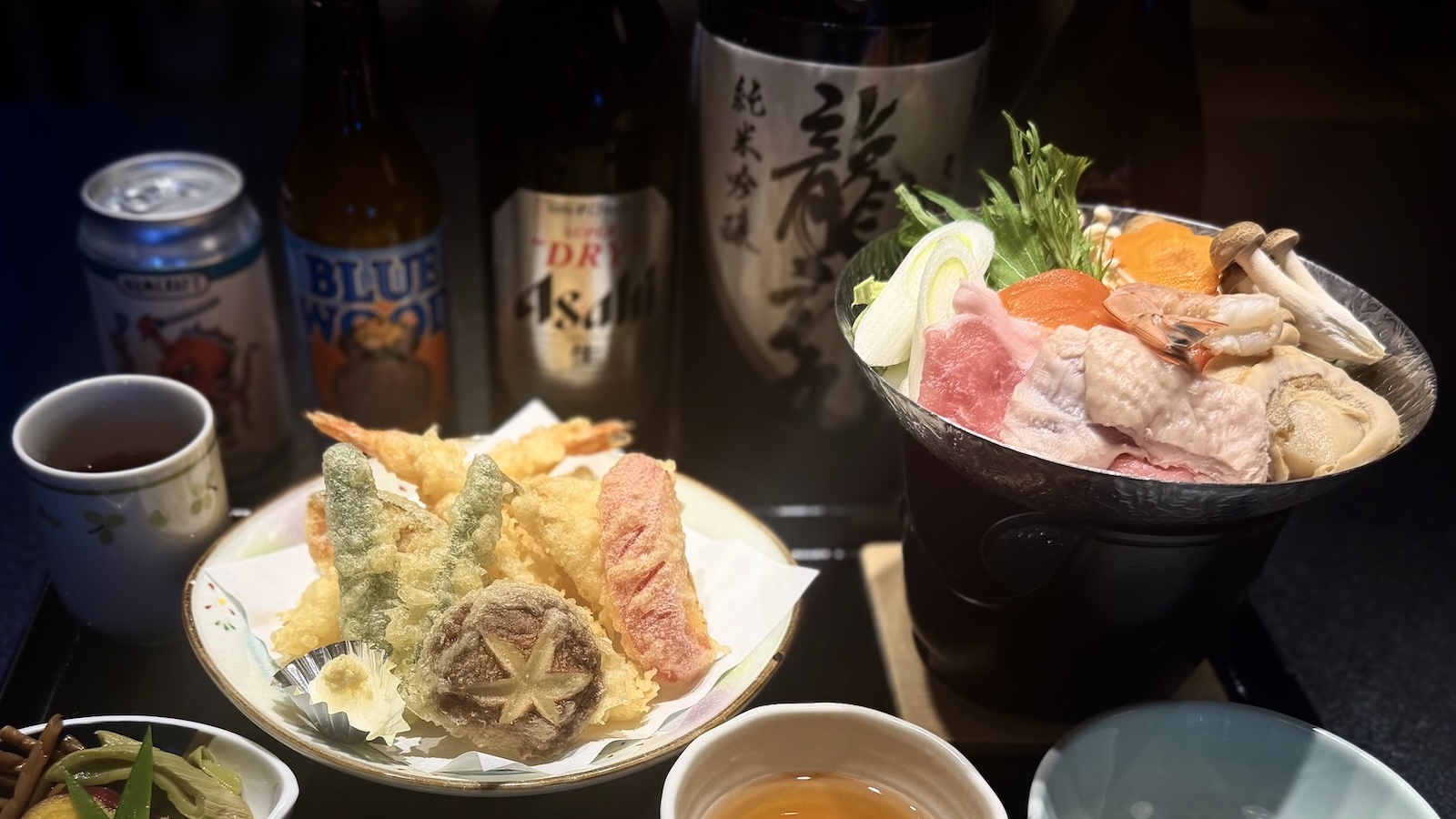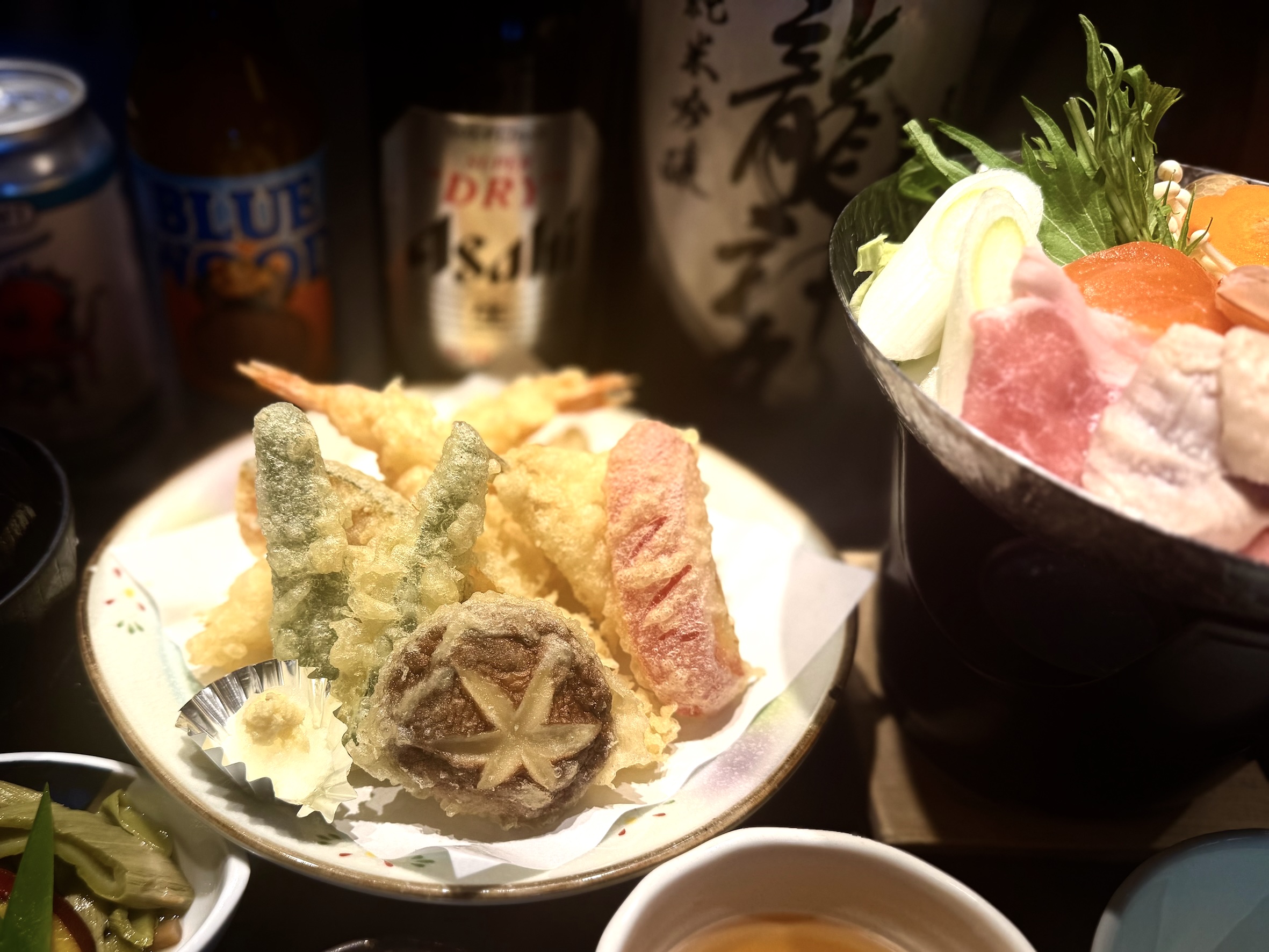◯天ぷら盛り合わせ ◯寄せ鍋 ◯小鉢 ◯ご飯・香の物