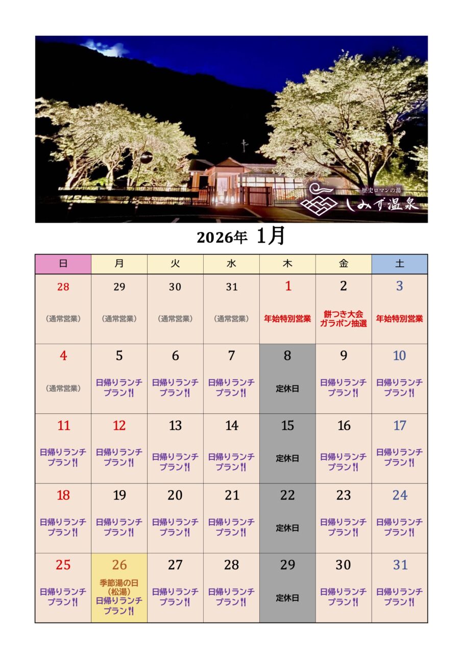 年末年始はご家族やご友人と、“高野の向こう”裏高野・しみず温泉までぜひお越しください。みなさまのお越しを心よりお待ちしております。