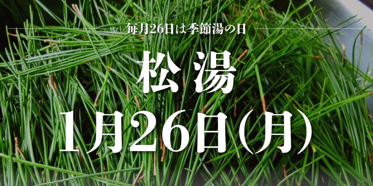 1月は松葉のお風呂。松の葉には、クロロフィル(葉緑素)やケルセチン、テルペン精油(α-ピネン)などの有効成分が含まれています。これらの成分には、体内の余分なコレステロールを排出する働きや、血液中の赤血球の数を増やすことで貧血の改善に効果が期待できます。さらにはリラックスや疲労回復などの効果も。新年の疲れを癒すのに最適といえるかもしれません。