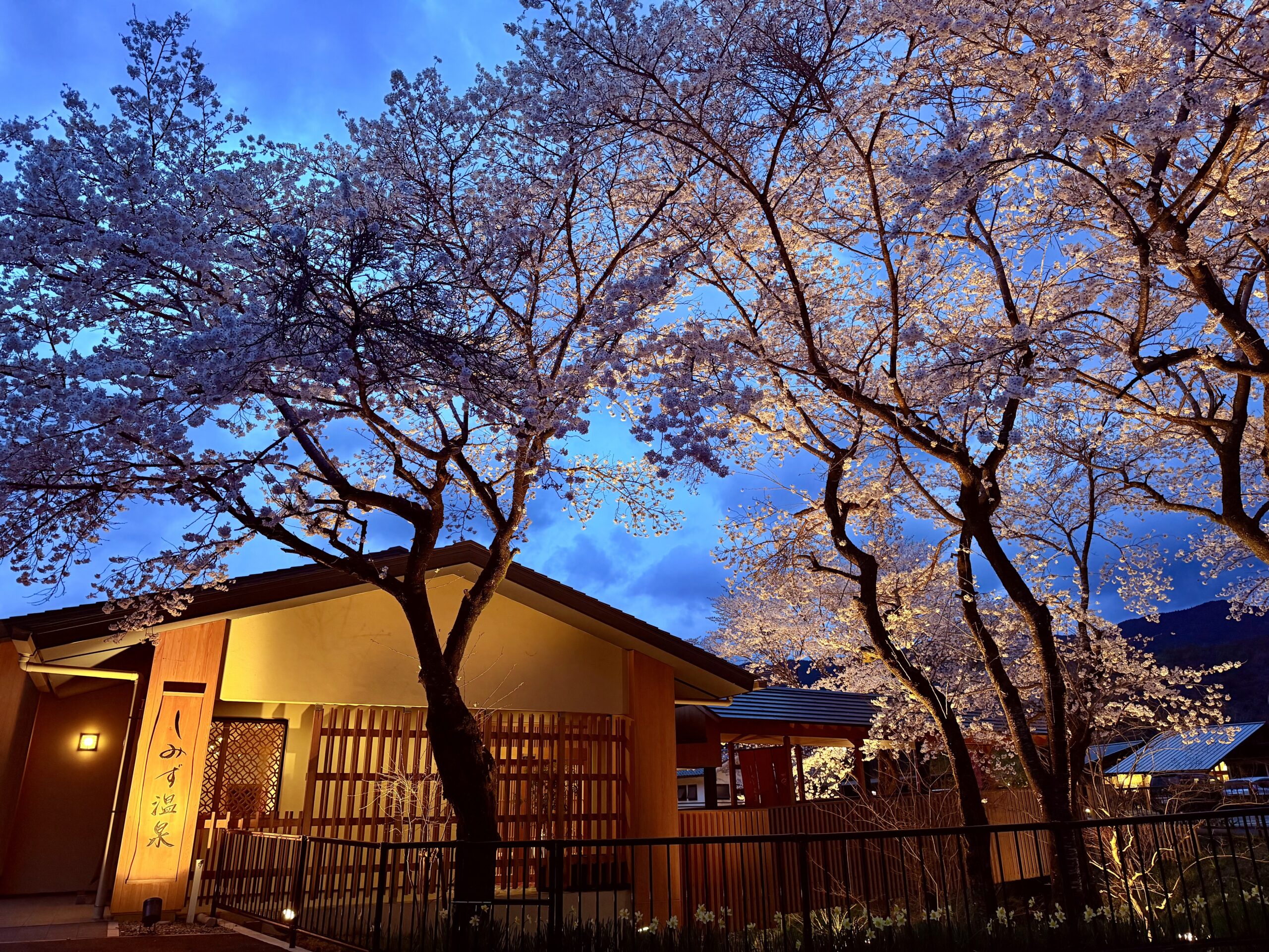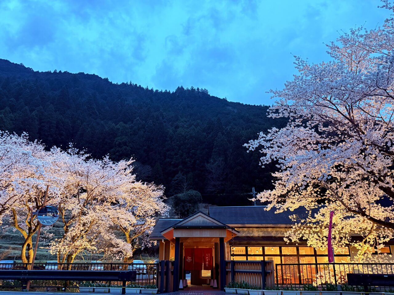 桜の名所、二川ダム湖畔から「歴史ロマンの湯」しみず温泉にかけて、満開の時期を迎えています! 一昨日夜からの雨風で散ってしまうのでは?と心配していましたが、さほど影響もなく満開を迎えています🌸